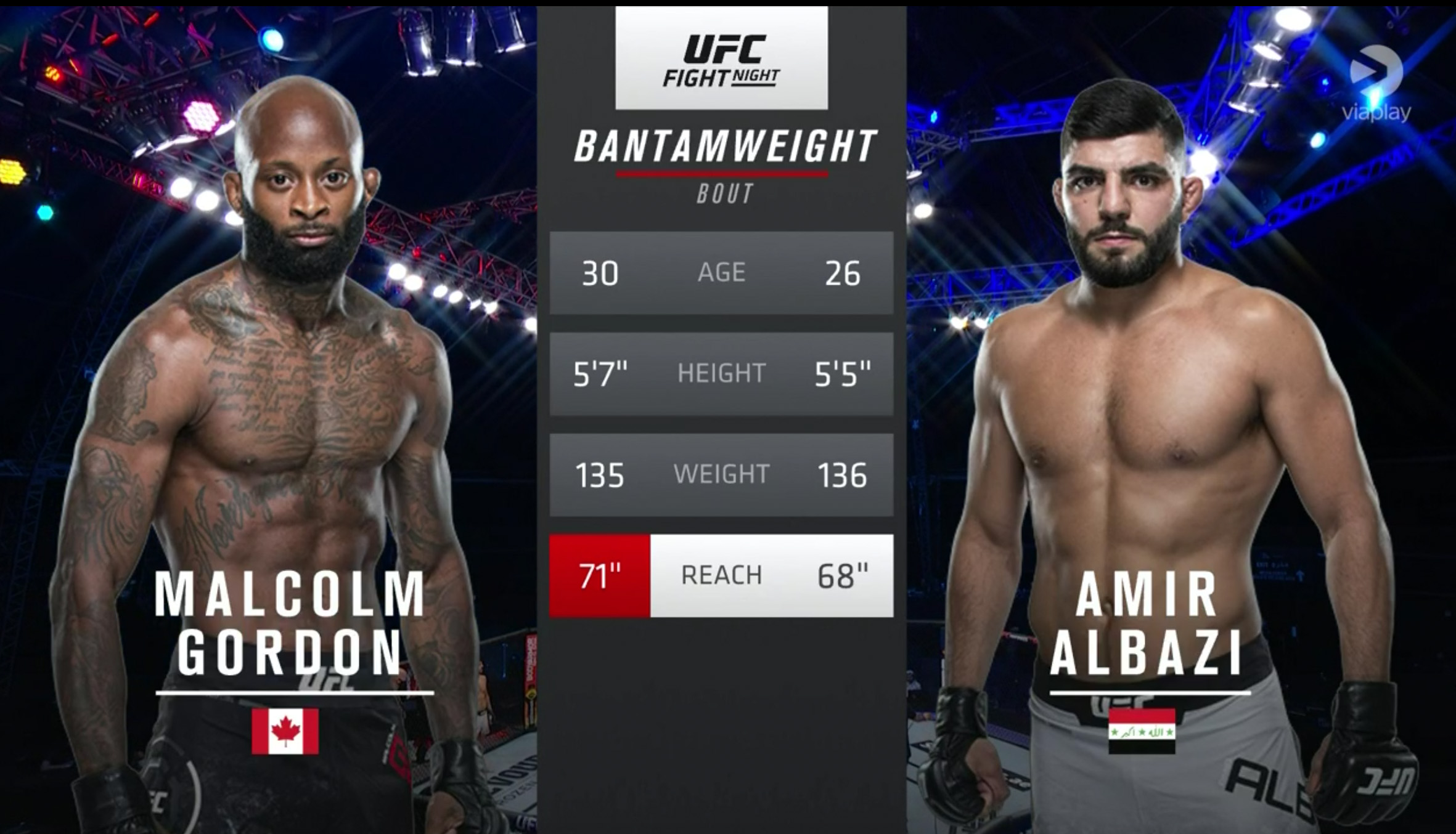 Sweden-raised Amir Albazi (13-1) submitted Canadian Malcolm Gordon (12-4) at UFC Fight Island 2.