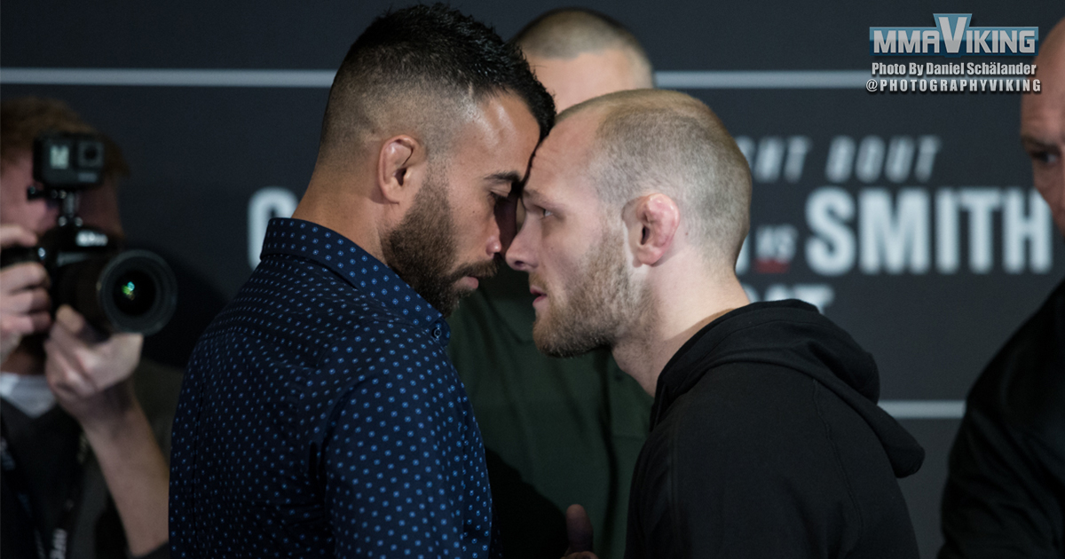 Finland’s Makwan Amirkhani and England’s Chris Fishgold had all smiles to give at the UFC Media Day in Stockholm. That was until it was time for the two opponents to face off and things got heated. MMAViking’s Daniel Schälander (@photographyviking on instagram) was on site to capture the action, check it out below.