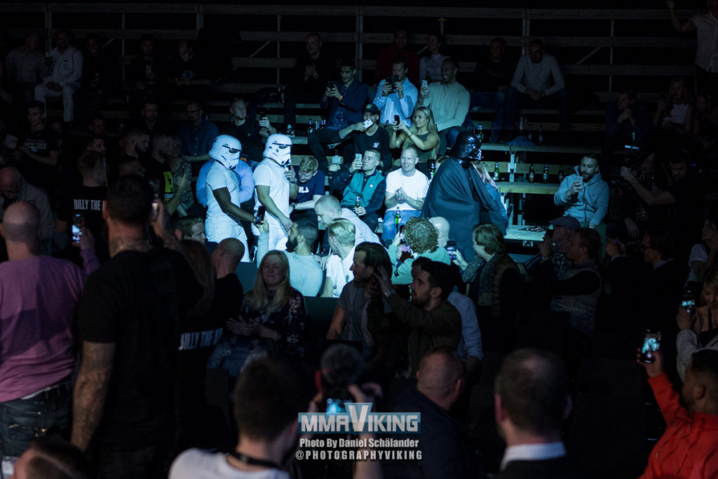 Unorthodox GBG MMA fighter Anton Turkalj (3-0-0) secured his third straight win by stoppage as he took out Belarusian Yulian Borisov (2-5-0) with a deep rear naked choke in the first round. Turkalj put on a show for the crowd from the moment he and his stormtrooper entourage entered the venue to the final bell with an impressive performance. Anton is quickly becoming a rising prospect among the top Nordic ranked Nordic Light Heavyweights and if he can keep up delivering performances like this he may very well earn his own spot in the rankings. MMAViking’s Daniel Schälander (@photographyviking on instagram) was on site to capture the action at Bulldog Media Fight Night in Gothenburg, check the photos out below.
