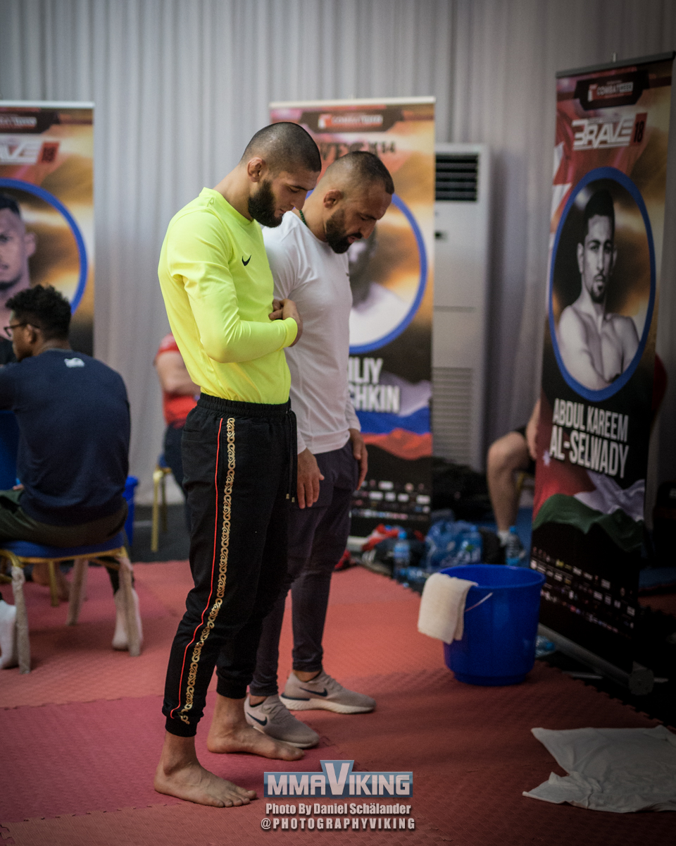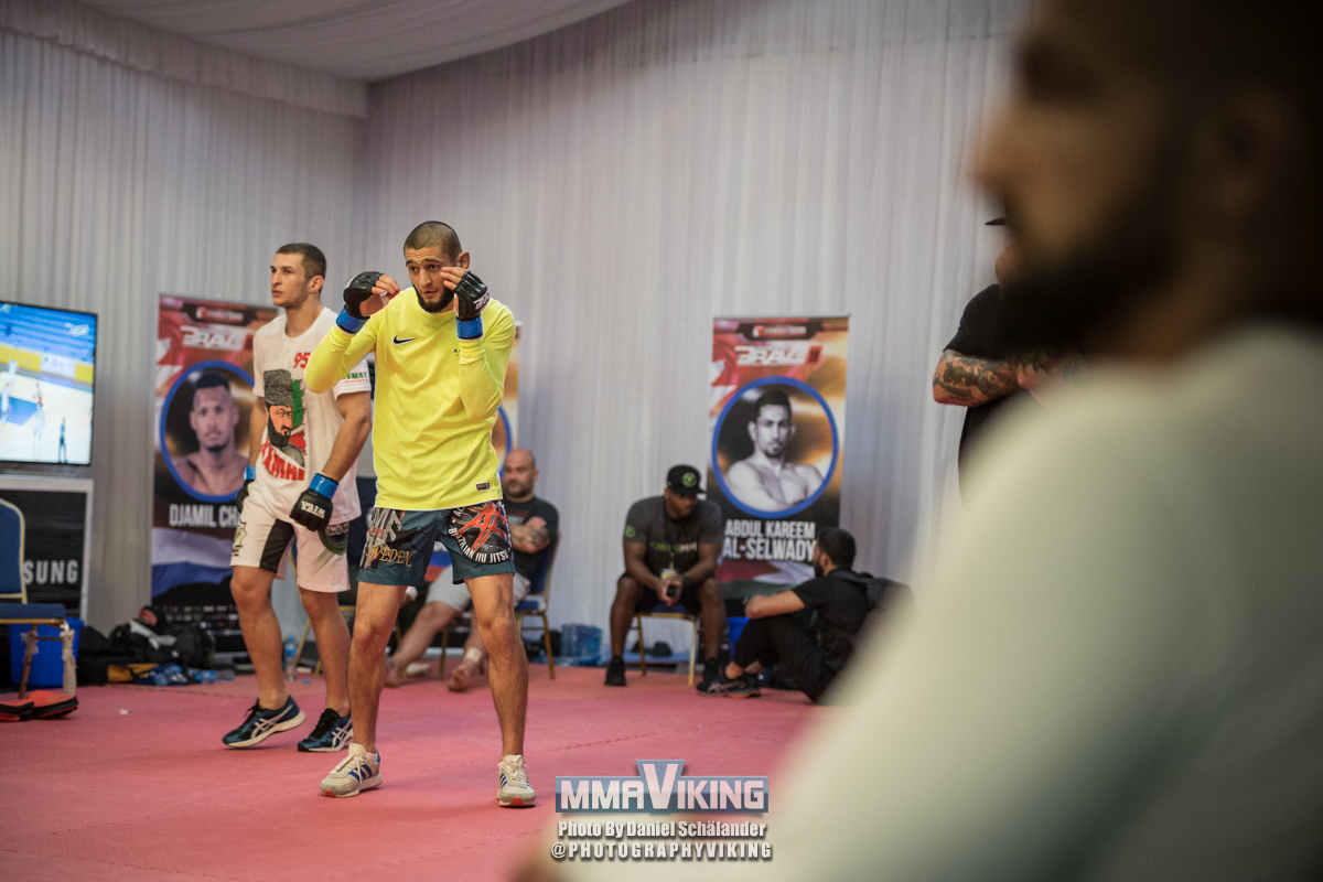 Khamzat Chimaev (3-0) stopped Marco Kisic (4-1) by TKO in his debut with the Brave promotion. MMAViking’s Daniel Schälander was cageside to capture the action both inside and outside the cage. Check out warm-up pictures with Allstars Training Center teammate and coach Reza Madadi here.