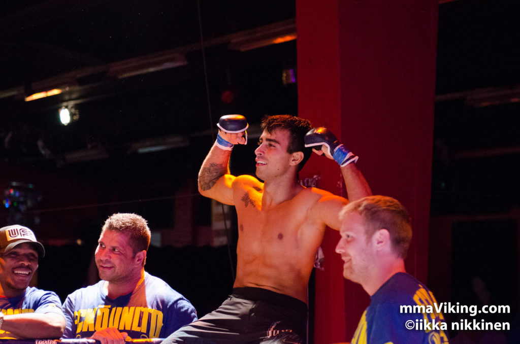 As hometown star Matias Rantala entered the ring to face swedish wrestling champion Alexander Bergman the crowd exploded. Bergman didn’t wait for too long to utilize his championship level wrestling as he took Rantala down quickly and started dominating the fight from the top position. At one point Rantala had Bergman hurt with a powerful right hand, but Bergman recovered and took Rantala down and secured a unanimous decision.