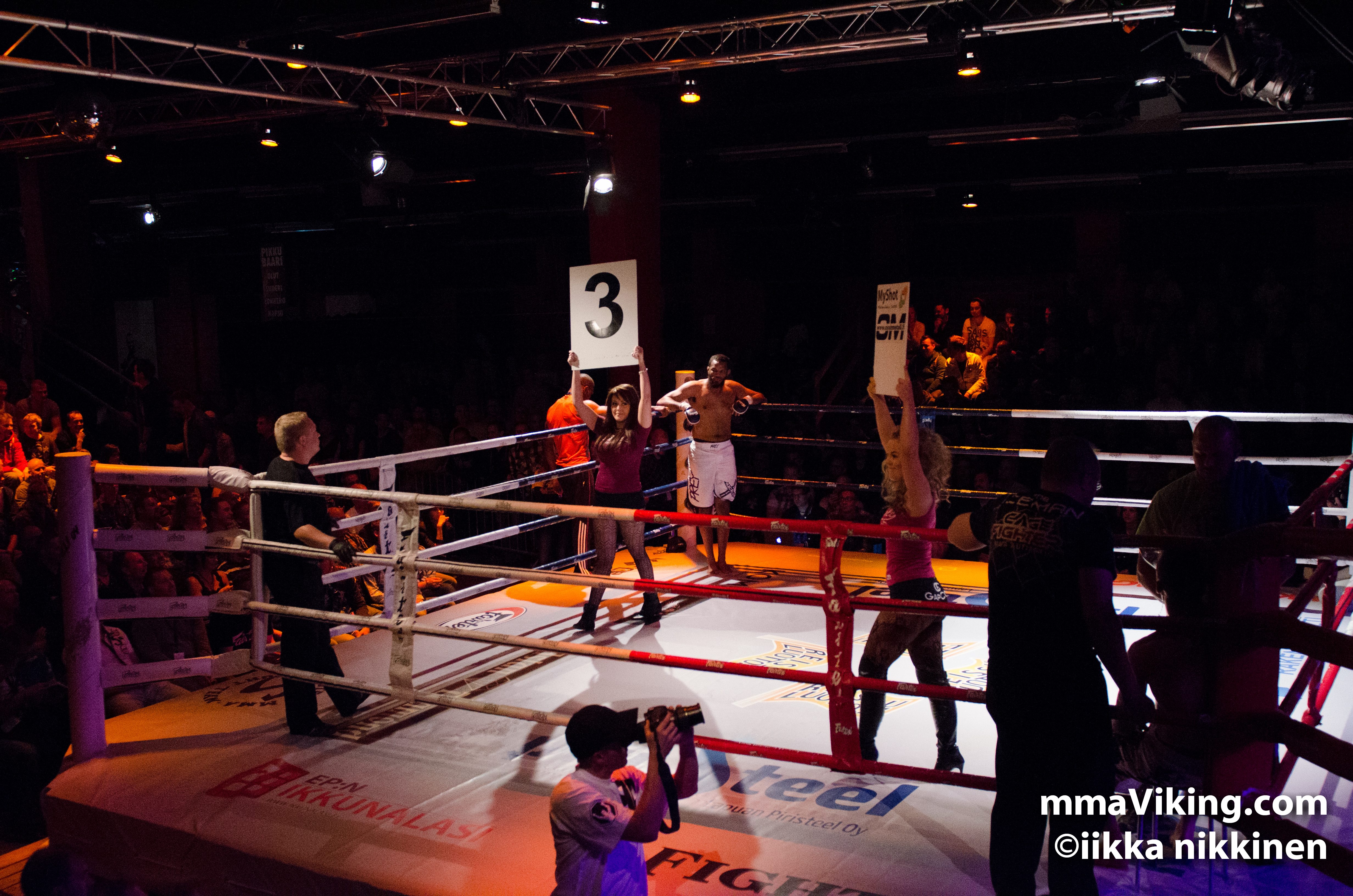 The Rytmikorjaamo venue in Seinäjoki, Finland is as intimate as a sauna on a midsummer’s eve. It was my first time in this legendary location and the event was not shy to deliver great action to a cold autumn Friday night. The event was sold out and for the first time in Botnia Punishment’s history, the event was also streamed live on their Facebook page. The evening presented nine pro fights for us and out of those fights, four fights were quick first round stoppages.