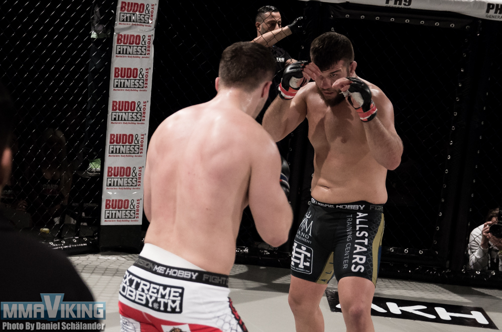 Allstars Training Center’s Herdem Alacabek pro debut was successful, as he stopped Poland’s Pawel Okonski in the second round at IRFA 7 Saturday night. MMAViking.com photographer Daniel Schälander was cageside to capture the punches leading to the stoppage.