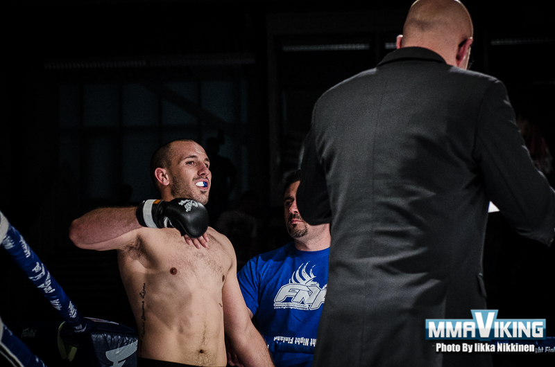 Kai Puolakka of GB Gym / Team MMA Finland lost to Davy Gallon of Adrenaline Fight Team at Helsinki Fight Night Saturday night. MMAViking.com’s Iikka Nikkinen was cageside to capture the action of the first round submission at Fight Night Finland‘s first card in Helsinki. See the pictures below: