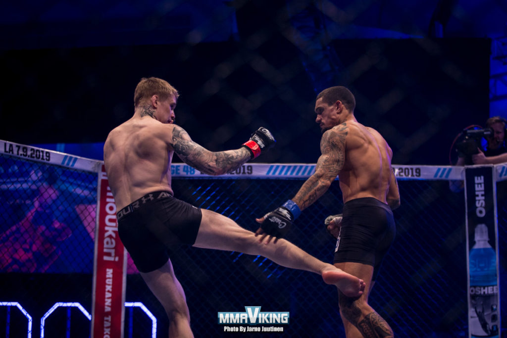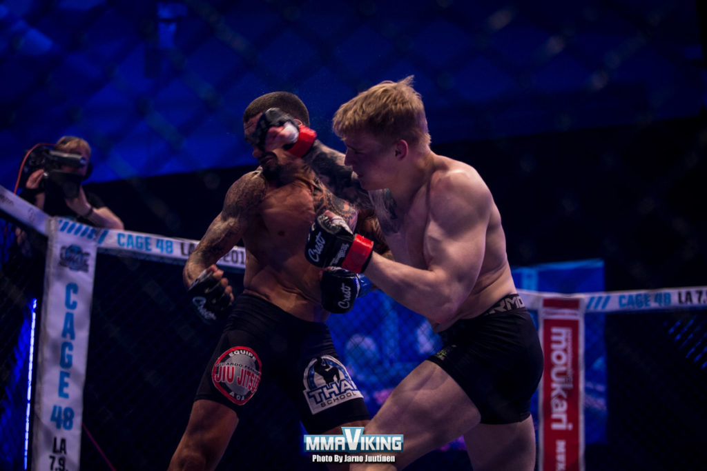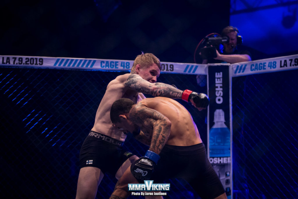Aleksi Mäntykivi (13-5) stopped Brazilian Kaynan Kruschewsky (9-1) at Cage 47. The Finn knocked out previously undefeated fighter with a big right hand for his second straight win. MMAViking’s Jarno Juutinen was cageside in Helsinki to capture the action. Check out pics here.