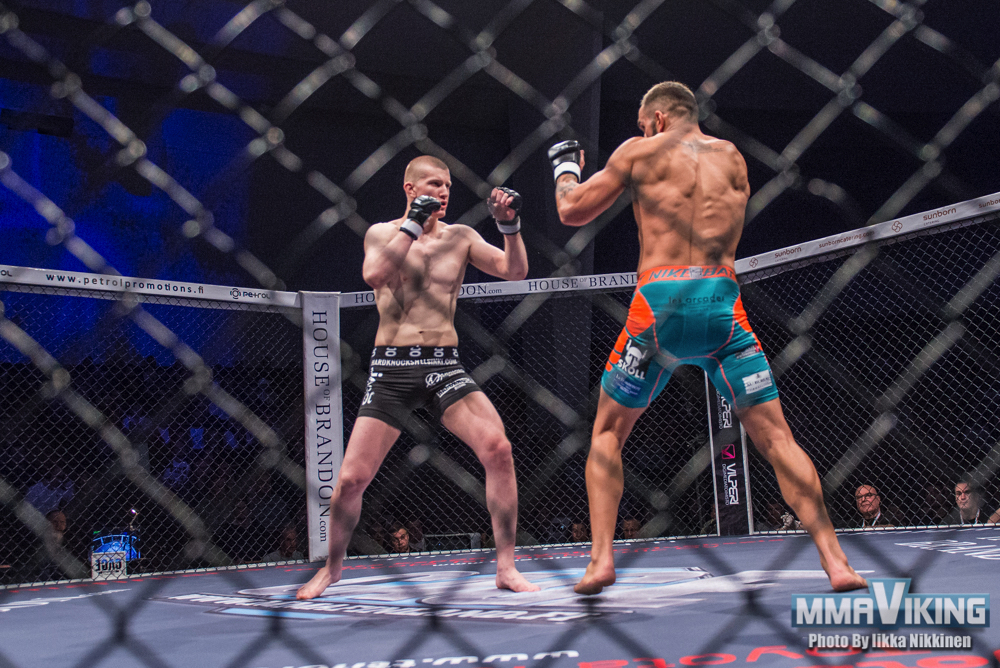 Mikko Ahmala moved to Helsinki, Finland and joined the newly established HardKnocks Helsinki team. He looked to start 2015 with a bang, but unfortunately for the fighter called Maniac he was stopped by Julien Piednoir in the second round. First round was closely contested, but Piednoir came to the second round with more energy than Ahmala. MMAViking.com’s photographer iikka Nikkinen captured these moments from the fight.