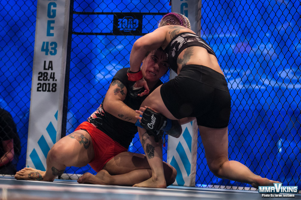 Finn Suvi Salmimies (8-5-1) beat Argentina’s PΓ‘mela Aguirre (5-3) at Cage 42 Saturday night in Helsinki. MMA Viking’s Jarno Juutinen was cageside to capture the second round finish.Β Check out the pics from the House of Culture here.