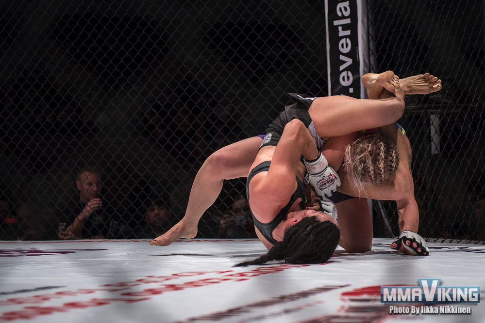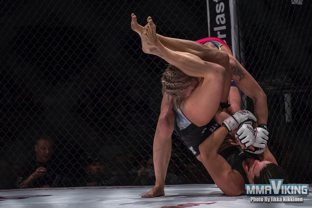 Salmimies was supposed to be fighting tonight at Superior Challenge in Sweden, but her opponent pulled out of the fight due to injury. Luckily after hard work from her manager Jukka Paananen and Cage matchmaker Timo Lampen, her training camp wasn’t for nothing as she got the opportunity to face French Isabelle Pare at Cage 28, Helsinki Finland. The match was a tough scrap, both fighters seemed to be cruising to a decision victory but the judges scored the fight as a draw. MmaViking’s photographer iikka Nikkinen was cageside to photograph this tough fight.