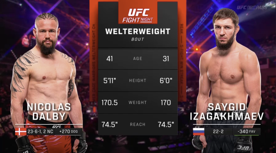 Nicolas Dalby (24-6-1 MMA, 8-5-1 UFC) edged Saygid Izagakhmaev (23-2 MMA, 0-1 UFC) at ABHA Arena for UFC Qatar in a huge win for the Danish underdog.