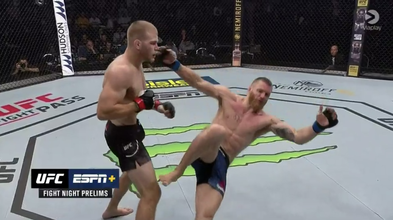 Norway’s Emil Meek (9-5, 1 NC) lost to Australian Jake Matthews (15-4) at the UFC Fight Night in Auckland, New Zealand. It was a 15 minute battle, with Meek always on offense. “Valhalla” used nasty kicks to destroy the front leg of Mathews and landed elbows and knees to damage throughout. However, it was Jake that got the take-downs to control on top in the first two rounds that got the nod 29-28, 29-28, and 29-28 in a real entertaining bout on the prelim card. Read the live play-by-play below.