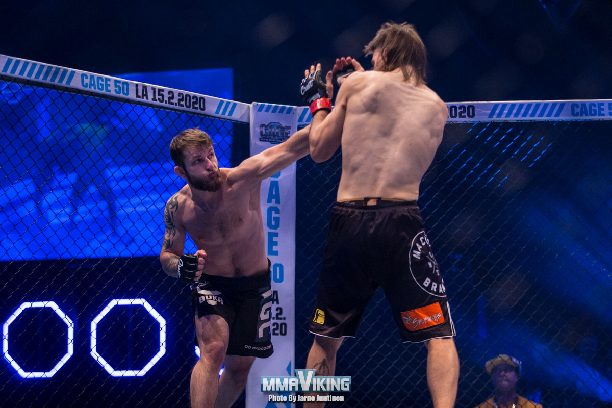 Finn Jesse Urholin (5-0) stopped Tazo Bochorishvili (7-2) at Cage 49 in the first round.Β MMAVikingβs Jarno Juutinen was cageside in Helsinki to capture the “Avenger” get his 5th straight stoppage.Β Check out pics here.