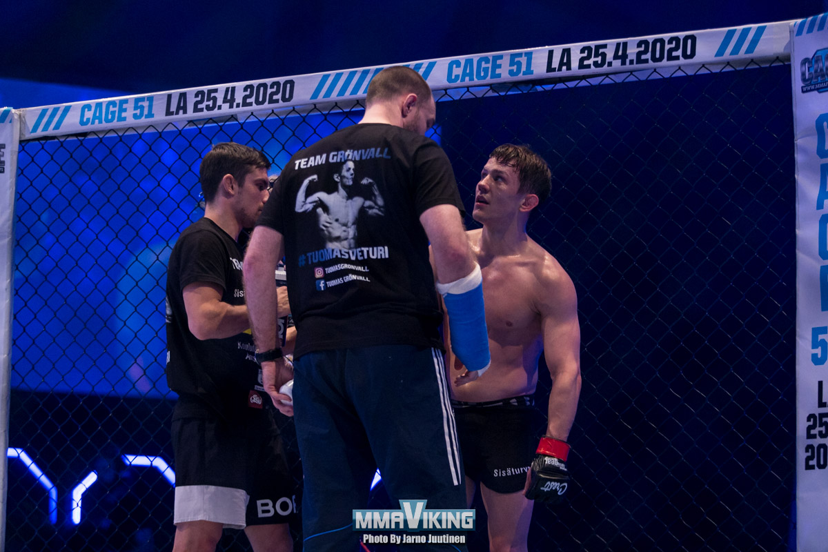Tuomas Grönvall (6-2-1) beat Artemij Sitenkov (15-17-0) at Cage 50. MMAViking’s Jarno Juutinen was at the House of Culture to capture the Finn get the unanimous decision. Check out photos here.