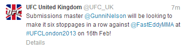 UFC’s UK office just announced on the Twitter that Gunnar Nelson (10-0) will fight at the UFC on Fuel 7 show on the 16th of February. At the Wembley Arena the Icelandic phenom will meet American Justin Edwards (8-2).