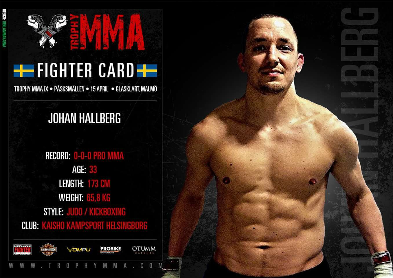 Johan Hallberg (0-0) will turn pro today at Trophy MMA IX – Påsksmällen in Malmö. “I’m confident in myself and I have a good feeling about tomorrow” says the 33-year-old that will face Linus Ahlbäck (0-1) in a featured featherweight bout.
