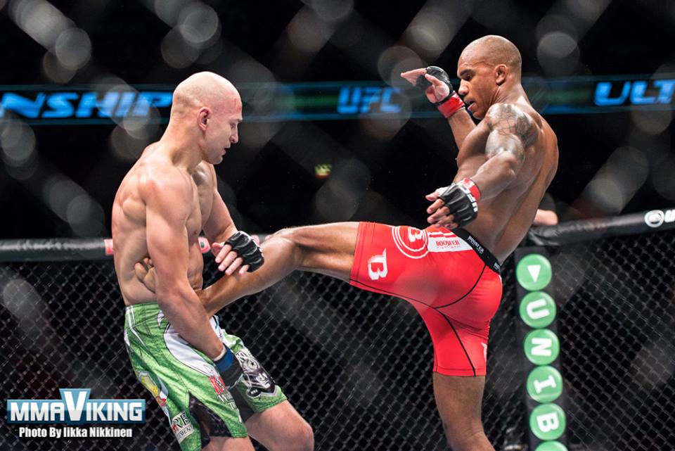 Musoke, Sweden’s native son, follows Yakovlev to the cage to a roar of applause from the Stockholm crowd. Before he is sealed within the cage, he raises a hand to the sky, a salute to his homeland, and the crowd goes wild. The crowd is ice cold to Yakovlev during introductions, and the Russian doesn’t attempt a glove-touch. Immediately Musoke pushes Yakovlev to the fence, and begins to pepper his thighs with knees. Musoke with a right-uppercut, then Yakovlev circles out. The Russian throws a heavy kick toward the head of Musoke, and Musoke hits him with a return jab before pushing him once more to the chain-link. Musoke with double underhooks looking for knees to the thigh and uppercuts as he holds the Russian against the fence. A knee up the middle lands for the Swede. Another, then the Russian circles out and attempts a level change, looking for the takedown. It isn’t there, and Musoke once more pressures him to the cage. Musoke lands a right hand as they break, and the Russian fight lands to the body and head. A short left to the head from Yakovlev, then Musoke attempts a level change. Denied is the Swede, and he kicks high in retaliation, but it lands on the gloves. Yakovlev ripping hooks, one to the head that may have cut Musoke, and a mean left hook to the body. The bell sounds and the round has ended.