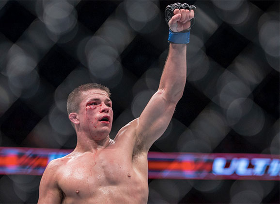 Nelson emerges to a roar of applause as if he were just another hometown fighter. Nelson’s gaze is ice, all calm determination, as he gazes across the cage at his opponent. Story takes the crowd’s dour displeasure in stride. The two fighters touch glove and this main event is rolling. Story with a leg kick early. Another. 2 more follow, and Gunnar returns fire to the body. The two clinch and Story throws an uppercut before they break. Nelson cracks a solid kick to the midsection of Story. Story with an inside leg kick before the two clinch in the center of the cage. Story throwing right hooks to the body until Nelson secures an inside trip and takes Story to the mat. Story refuses to remain on the mat and springs to his feet, but Nelson once more clinches in the center. More right hooks to the body from Story from the clinch, followed by a right hook to the head on the break. A solid kick to the body lands for Story. An inside low kick from Story puts Nelson on the mat, but he stays there for only a second before springing to his feet. A power left hand lands for Story and Nelson rushes forward, eating another left on his way in, and appearing to think better of it. The two return to the center with Story on the outside. A left hook falls short for Story, but he follows with another and a body kick, both of which land. The horn sounds and the first stanza ends with both fighters on their feet.