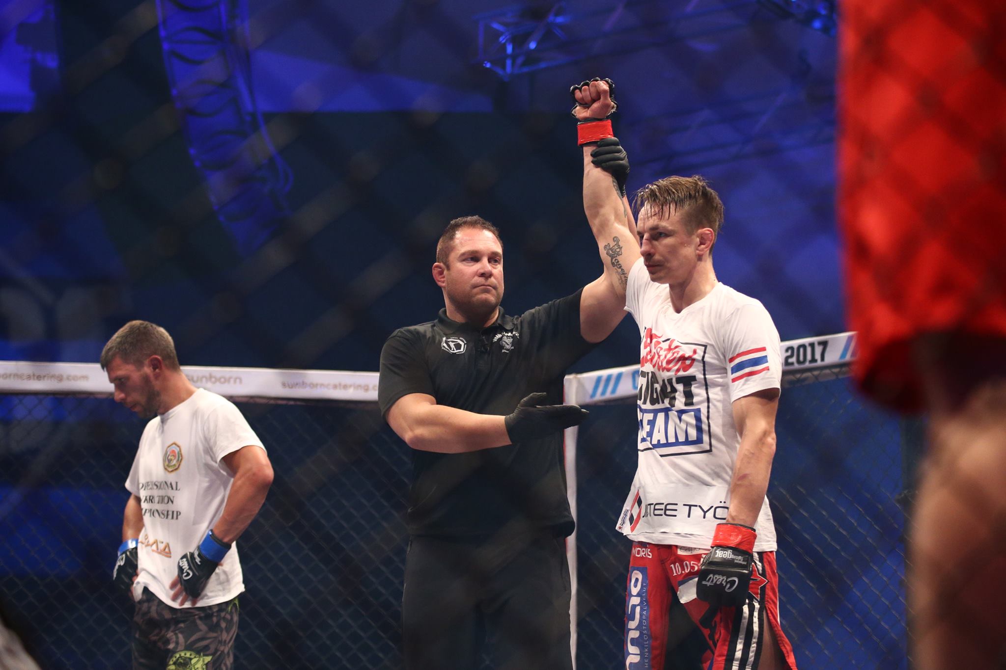 As the clinch ends Rajnoch goes for a knee, but Repo is well aware of this and dodges it. Rajnoch pressuring Repo agains the cage, but the Finn is having none of it as he lands a huge right hook and Rajnoch is knocked out cold. This one is over, Dynamite Repo gets the crowd off their seats.