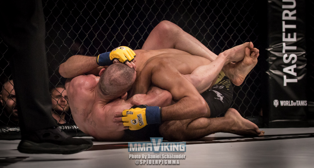 Round 3 – Like the second round Nicolas goes all in again with punches and kicks. Carlo gets a takedown but can’t control on top, they are back up in the clinch. Nicolas lands a nice kick and scores a takedown. He keeps the control in the top position for a few seconds. Carlo tries to scramble but Nicolas retains the control on top. Carlo is looking more and more tired the longer this fight goes. Nicolas gets mount position and finishes the fight with some ground and pound. Had this been a five round fight there’s no way that the Italian would’ve keept up with Lokomotivo Dalby but unfortunately it isn’t.