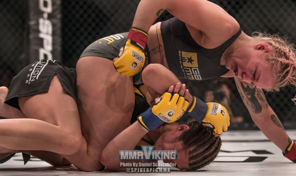 Round 2- Malin dominates the first minute with her striking. Cornelia throws some great kicks and then back to clinch where Cornelia keeps the control. Cornelia gets a takedown and establishes top position. She keeps the control for the last seconds of the round.