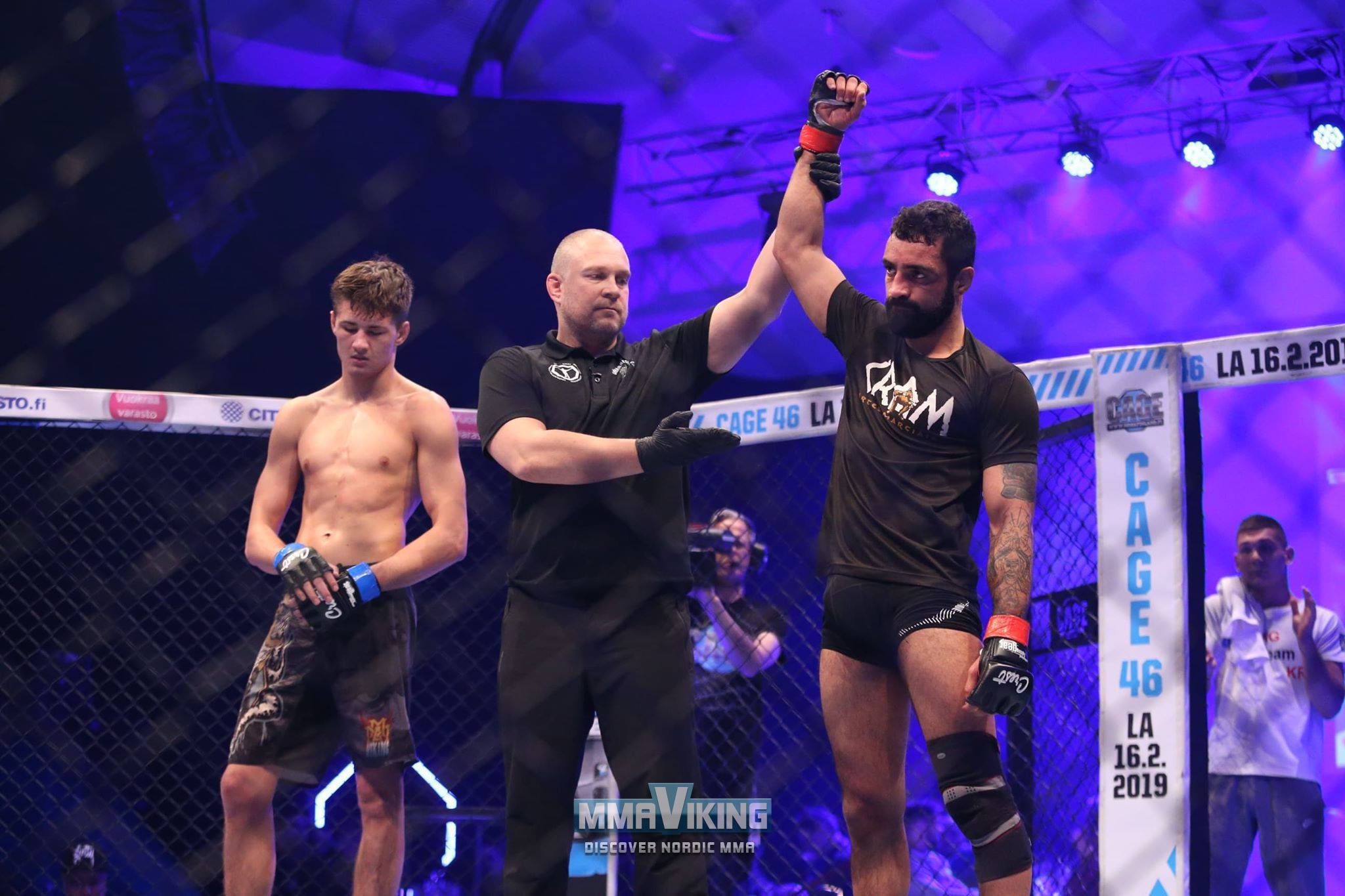 Round 1 – Lampinen opens with a front kick up the middle, and Savolainen tags him early with a right hand. The two trade kicks, and Savolainen goes upstairs with a head kick, before mixing hands to the body and head. Savolainen takes the center and is landing with harder shots, but Lampinen seems content to counter punch from the outside, and rip hard leg kicks. Savolainen attempts a head kick, and slips to the mat. Lampinen is all over him, securing a tight standing guillotine that causes Savolainen to tap.