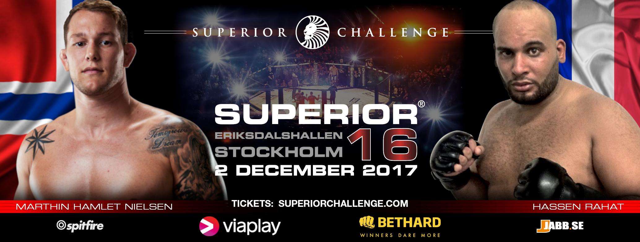 Marthin Hamlet NielsenΒ (1-0) is ready for his second pro MMA bout and will face Hassen Rahat (2-1). The wrestling standout will be testing his skills again on December 2nd back in Stockholm at Superior Challenge 16.