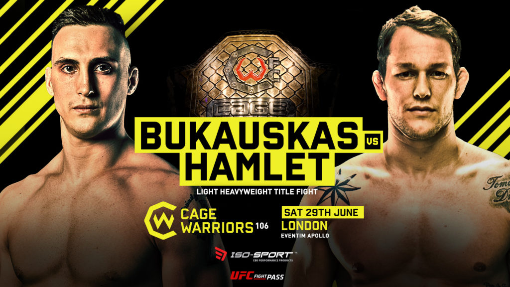 Bukauskas vs Hamlet is the fifth of six world title fights set for CW106: Night of Champions, alongside Jack Grant vs Jai Herbert, Nicolas Dalby vs Ross Houston, James Webb vs Nathias Frederick and a featherweight title defence from champion Dean Trueman. Cage Warriors can confirm that Truemanβs previous opponent SΓΈren Bak is no longer willing to cut the weight necessary to make the 145lbs featherweight limit, and so will be returning to lightweight. President Graham Boylan has teased that a new opponent is very soon to be confirmed.