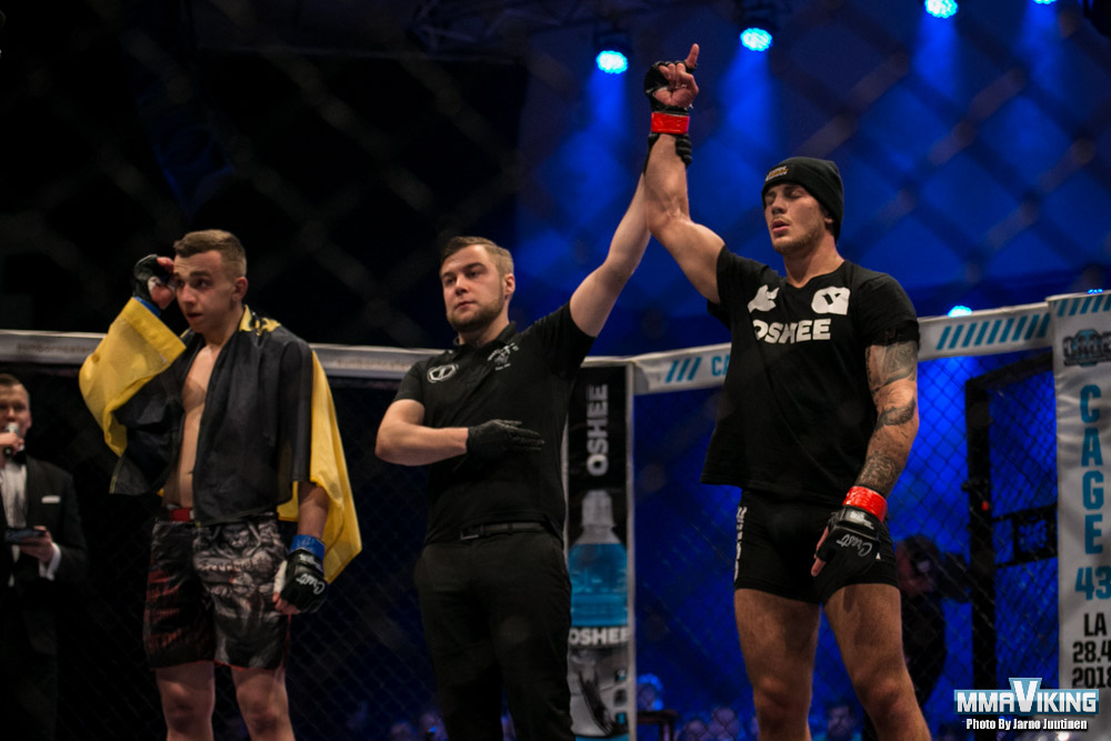 The Finnfighters’ Gym fighter landed some kicks early before getting the fight to the ground, where he eventually took back and sunk in a rear naked choke.