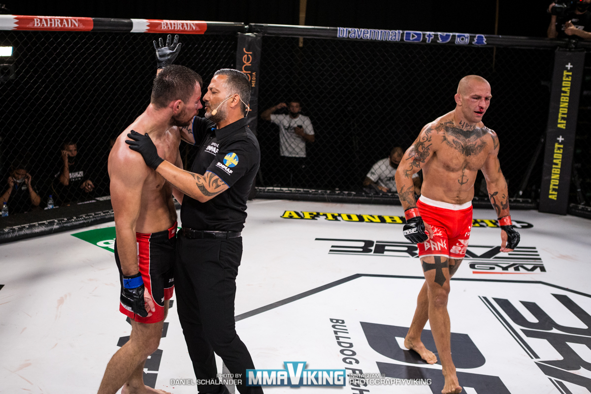 Swede Andreas Gustafsson (6-0) stopped Miro Jurković (10-2-0) from Serbia in a slugfest at BRAVE CF 39 Stockholm. MMAViking’s photographer Daniel Schälander (@PhotographyViking on Instagram), was cageside taking photos for the BRAVE CF promotion. Check out pics here.