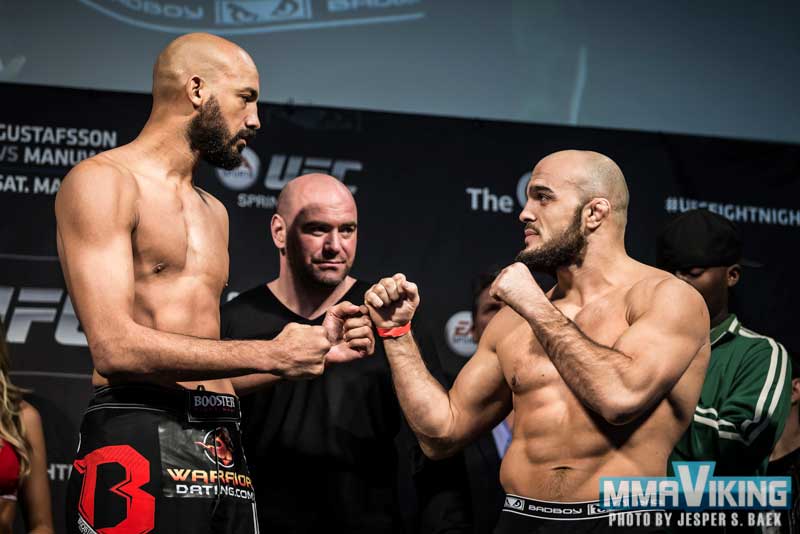 Main Card fighters Ilir Latifi and Cyrille Diabate weighed-in today at the O2 arena in London ahead of tomorrow’s event. MMAViking’s lead photographer Jesper Baek there to capture the two making weight. See the photos below.