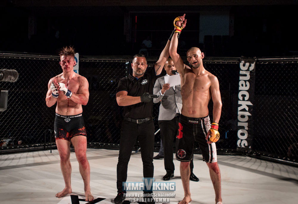Allstar Training Center’s Khamzat Girikhanov (1-0-0) defeated Norway’s Gard Olve Sagen (1-2-0) via TKO in the second round after taking Gard’s back and landing some powerful ground and pound. Norway’s Gard got dropped in the first but didn’t back down and stayed in the fight making it to the second before he had to see himself defeated by the new prospect. MMAViking was on site to capture the action, check out the fight photos below.