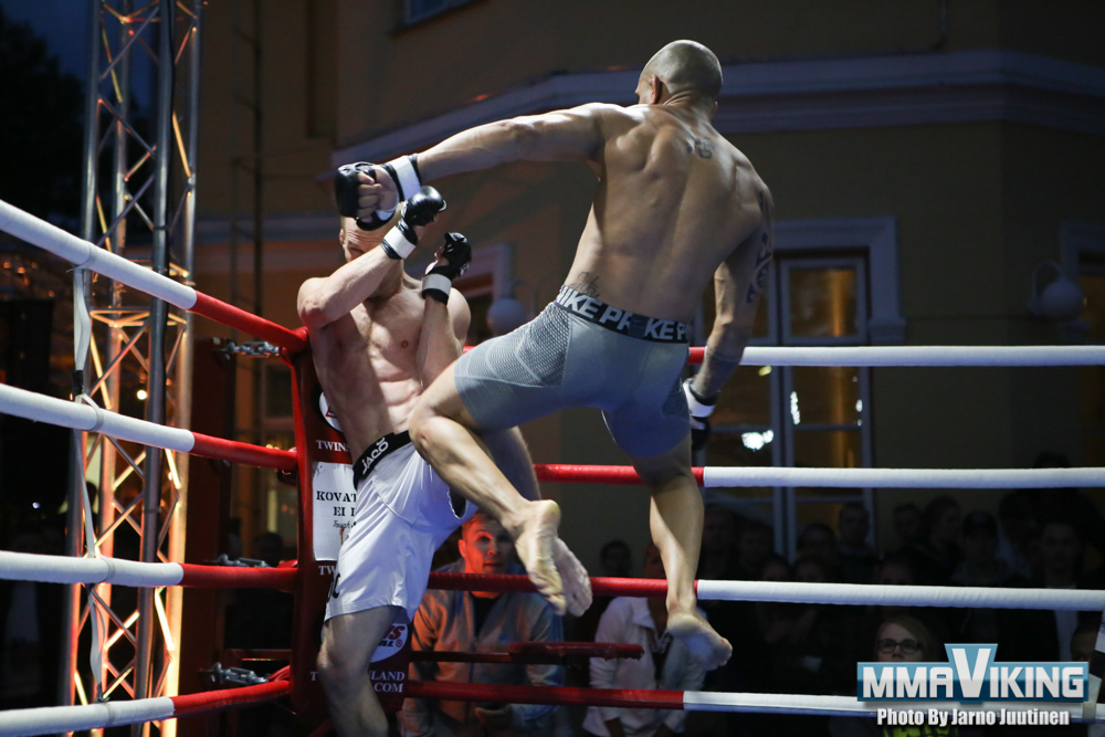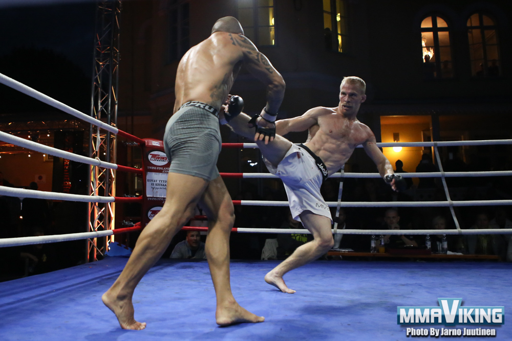 Sweden-based Brazilian Rafael Macedo (8-3-1) beat Finish vet Jerry Kvarnstrom (11-9) at the Fight Promotion Showdown Goes Ruissalo event last Saturday in Turku, Finland. MMAViking.com contributor Jarno Juutinen was cageside to take pictures of the three round decisionย that took place outdoors into the night. Check out the photos here!