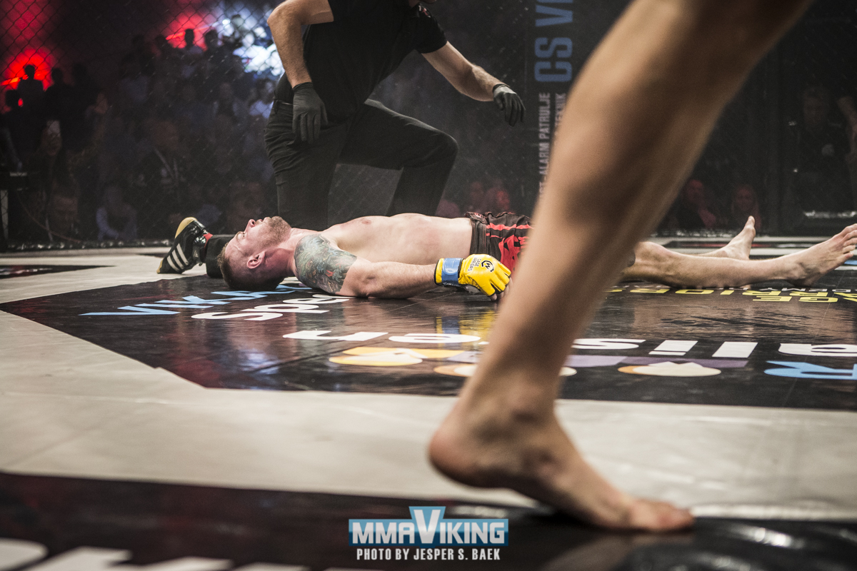 Undefeated Marthin Hamletย (4-0) made quick work of Jack Rolinski (1-3) at Cage Warriors Academy Denmark 1 in Nykรธbing Falster, Denmark. Check out photos by MMA Viking’s photographer Jesper Spangsgaard Baek that was cageside at Nykรธbing F Hallen to capture the wrestling champion get the first round submission.