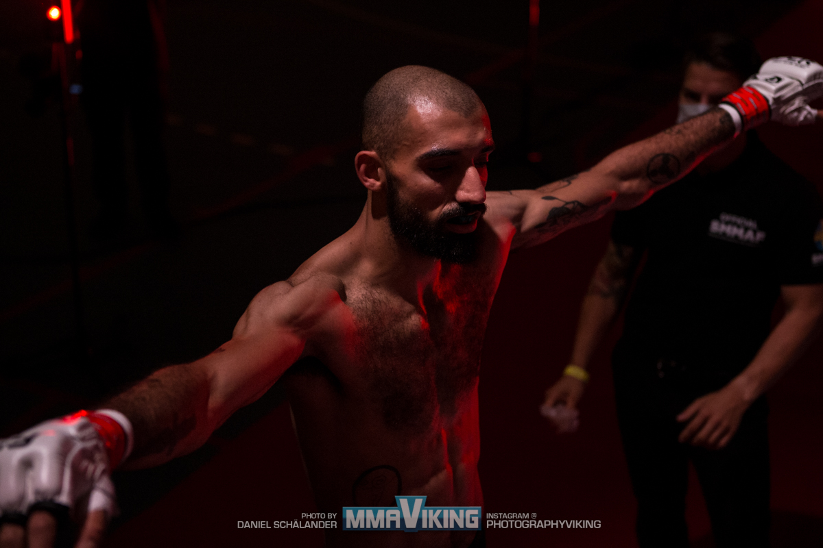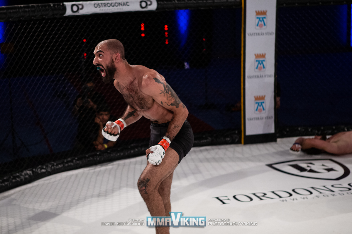 Moe Ahmadi (1-2) stopped Elvin Hoxha (0-1) in the main event of Fight Club Rush 7 in Västerås, Sweden today. MMA Viking’s Daniel Schälander (@PhotographyViking on Instagram) was cageside to capture second round submission.