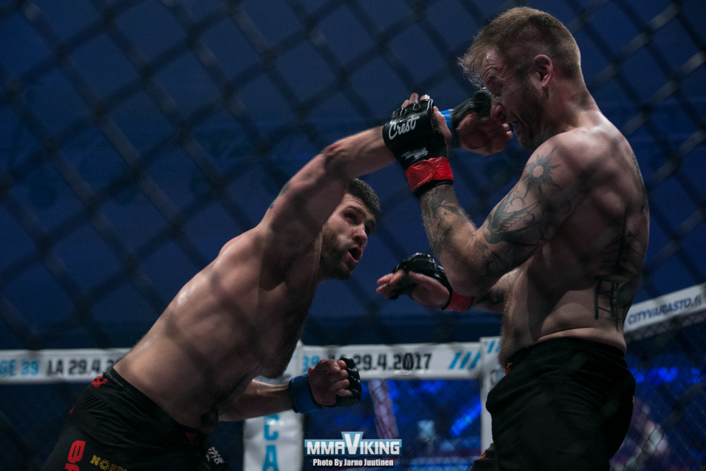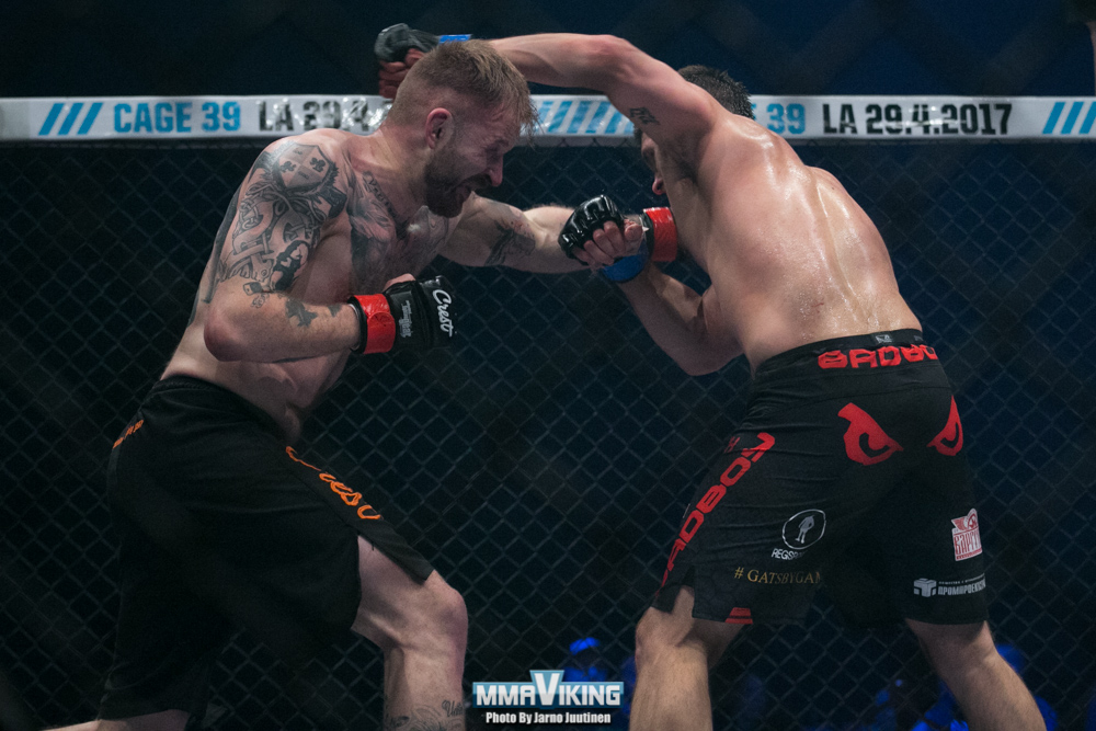 Finn Saku Heikkola (7-7-1) was on the losing end of a decision versus Andrey Seledtsov (6-3-0) at Cage 38 in Helsinki.  MMAViking.com contributor Jarno Juutinen was at Helsinki’s House of Culture to capture the action of the first fight of the evening. See pics here.