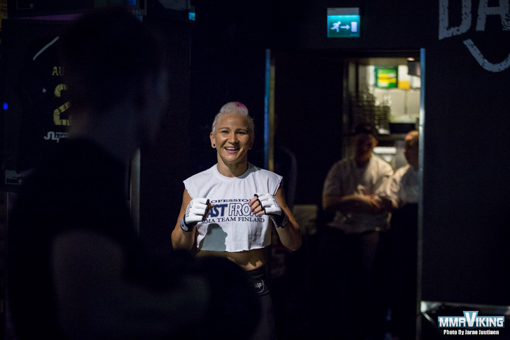 Suvi Salmimies (9-5-1) will take on Victoria Shalimova (4-4) at Cage 44 on September 9th in Helsinki, Finland. Jarno Juutinen was at media day for the Finn’s open workout at the Casino Helsinki’s Sports Bar. Check out pics here.