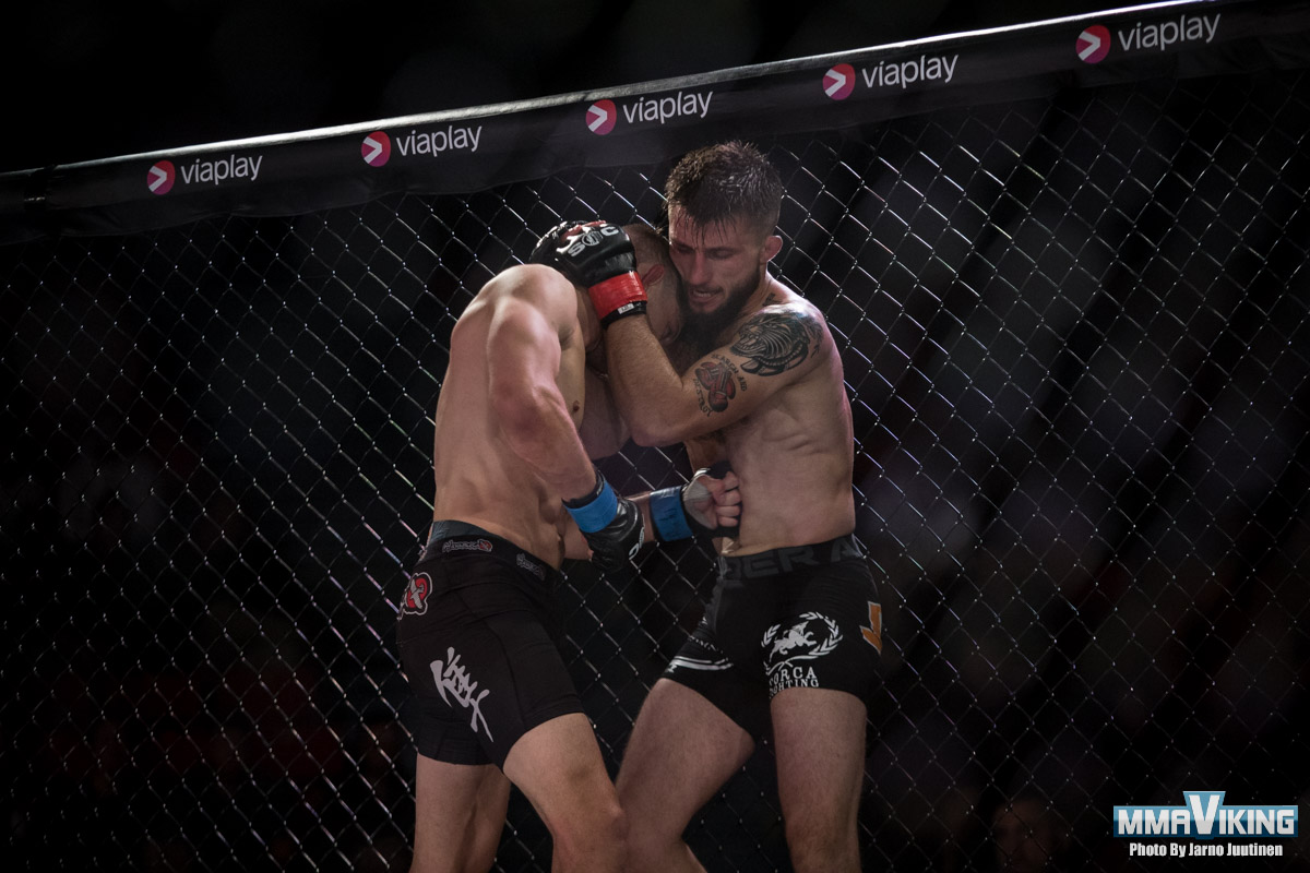 Swede Bartosz Wojcikiewicz (7-1) battled Swiss fighter Kenji Bortoluzzi (11-4) for 15 minutes, but it was not enough to keep his undefeated status against the crafty veteran.Β Jarno Juutinen was cageside to capture the action at Superior Challenge 23.Β Check out photos here.