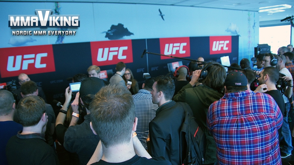 Gunnar Nelson is looking relaxed at media day with his new haircut. ย “Gunni” will step in the cage Sunday at the UFC’s first trip to Holland this Sunday as he facesย Albert Tumenov. ย MMAViking.com is in Rotterdam and you can see pictures from the day here.