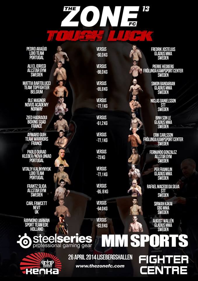 The Fight Card for The Zone FC 13 – Tough Luck in Lisebergshallen in Gothenburg, Saturday the 26th of April is completed.