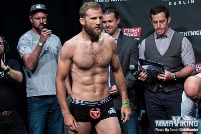 Sweden’s Tor Troeng, #2 Ranked Nordic Middleweight, takes on American Trevor Smith at The 02 tomorrow. Today the Hammer hit the scales at 185 lbs, while opponent Hot Sauce weighed-in at 185.5 lbs. Check out photos from MMAViking.com photographer Daniel Schälander who is in Dublin to capture weigh-in day.