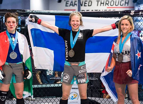 Minna Grusander won gold Saturday in Las Vegas at the IMMAF World Championships at UFC International Fight Week. The FinnFighters Gym fighter was the only Nordic fighter to stand first on the podium. “It’s awesome” says the 115 lbs champion to MMAViking.com shortly after the bout.