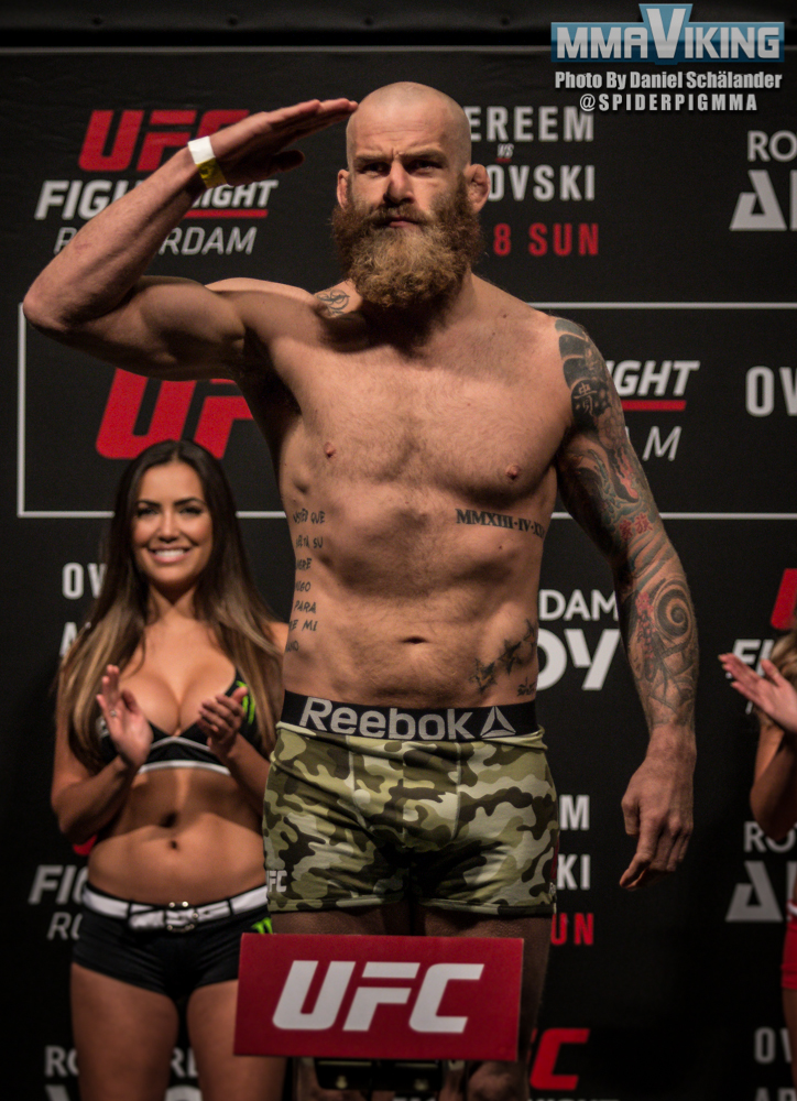 Magnus Cedenblad hit the scales today for his return to the Octagon after a year and half layoff due to injuries. Both Jycken and bearded opponent Garreth McLellan hit the scales to make the middleweight bout official. MMAViking.com’s Daniel SchΓ€lander was cageside to capture the Swede.