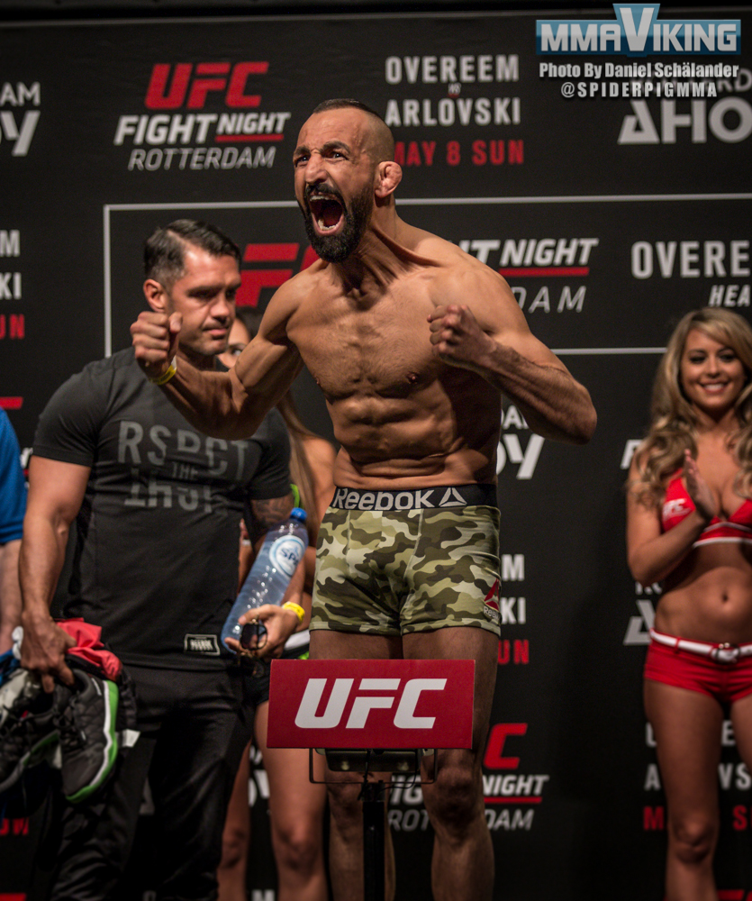 Reza Madadi is putting friendship with Yan Cabral aside, and it was the Mad Dog show here in Rottingdam. The Iranian born Swede was waiting for Cabral to step off the scales to get in his face. MMAViking.com’s Daniel Schälander was in Holland to capture the tense staredown.